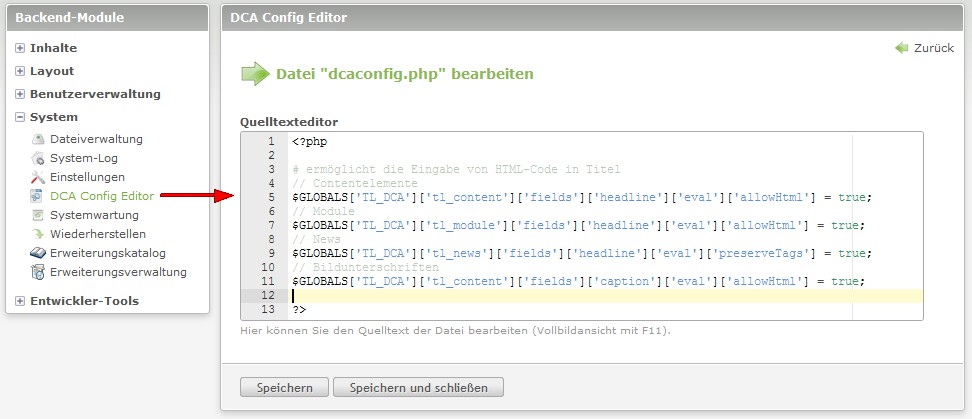 Der dcaconfig-editor ist für alle, die die Konfigurationsdatei dcaconfig.php direkt aus dem Backend anpassen wollen und nicht den Weg über z.B. einen "FTP-Download-Edit-Upload" gehen wollen.